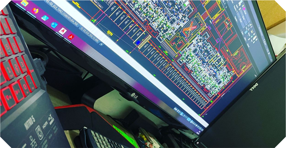 Sim, realizamos projetos de SPDA ou popularmente conhecido como para-raios, projetos elétricos para distribuição interna de pontos de força e luz (tomadas e iluminação), e também, de sintemas de segurança e comunicação.
